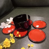 Набор экологически чистых лаковых подстаканников ручной работы из 6 черных и красных цветов с ящиком для хранения на заказ вьетнамская Свадебная Посуда Аксессуары